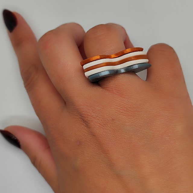 Explora nuevas formas de expresión con este anillo modular impreso en 3D en forma de corazón. Diseñado en PLA ecológico y combinable en capas, te permite personalizar tu estilo con creatividad. Su estructura ergonómica y ligera se adapta cómodamente, ideal para mujeres que apuestan por el diseño consciente, la innovación y la autenticidad. Hecho a mano en España, sin níquel. 💍 Reinventa tu look con una pieza versátil y artística.
