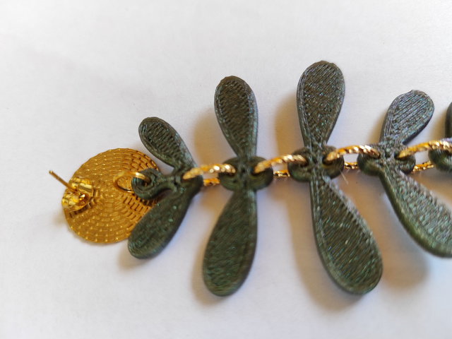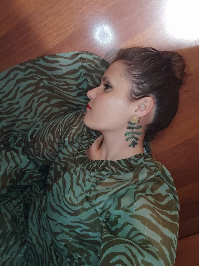 Estos pendientes extralargos representan la audacia y creatividad de la mujer contemporánea. Su diseño único refleja una hoja tropical completa, dividida en cuatro partes y unida por una argolla dorada con textura trenzada, creando una pieza visualmente impactante. Hechos a mano, fusionando el arte artesanal con tecnología de impresión 3D.