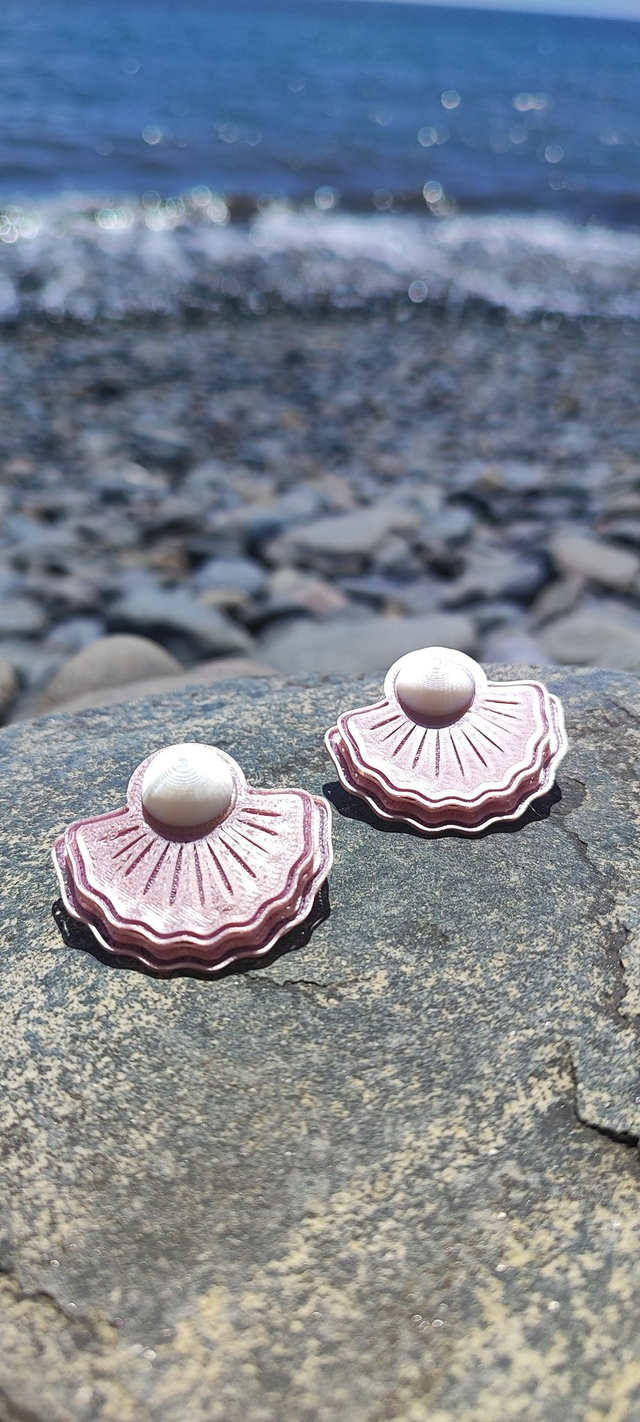 Pendientes de botón de tamaño mediano, en forma de ostra ligeramente abierta, con una media perla sobre ella, simbolizando la esencia de esta criatura marina y su vínculo con la evolución y el crecimiento personal. Hechos a mano, fusionando el arte artesanal con la tecnología de impresión 3D, estos pendientes transmiten un mensaje de transformación y belleza.