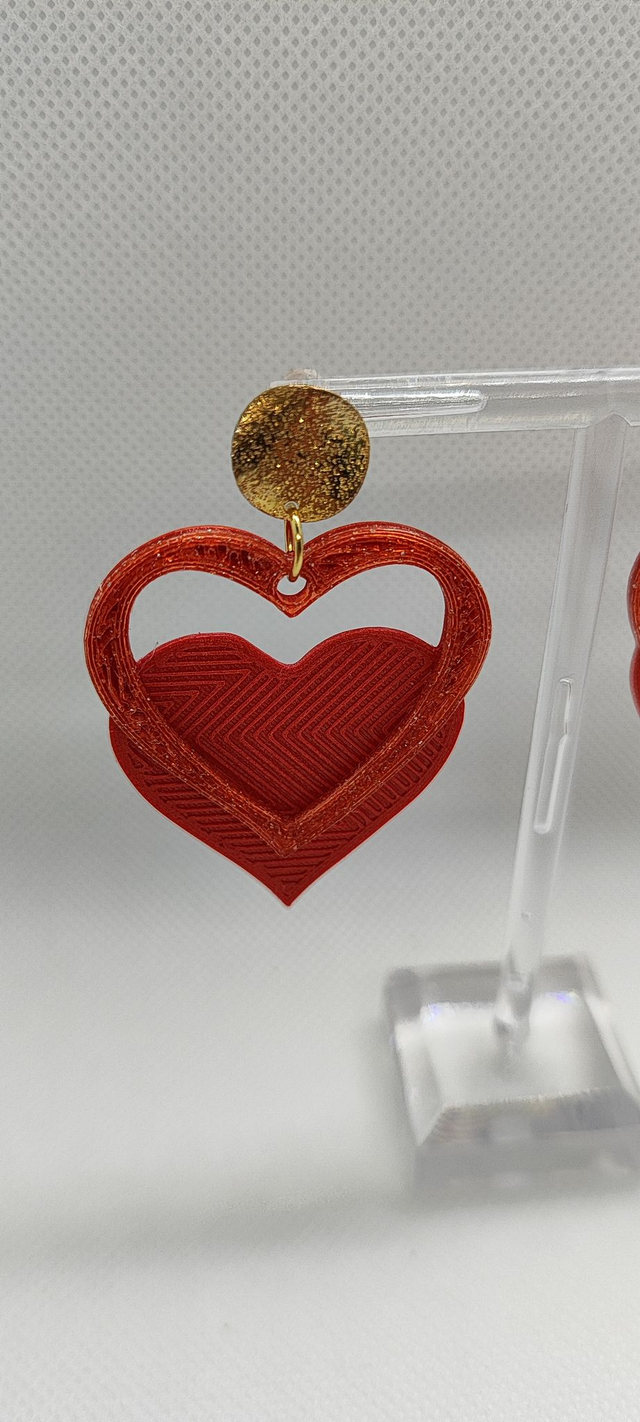 Siente la emoción en cada detalle con estos pendientes en forma de corazón, diseñados artesanalmente para capturar el movimiento del latido. El diseño combina un corazón con contorno elevado sobre otro completamente relleno, fusionando arte artesanal y tecnología de impresión 3D para crear un accesorio único.