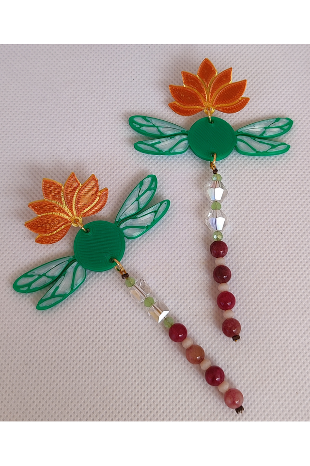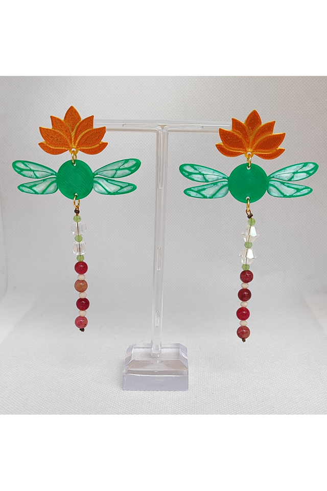 Pendientes Liranys | Libélula Artesanal con Turmalina Natural | Joyería Sostenible y Simbólica ImpYris