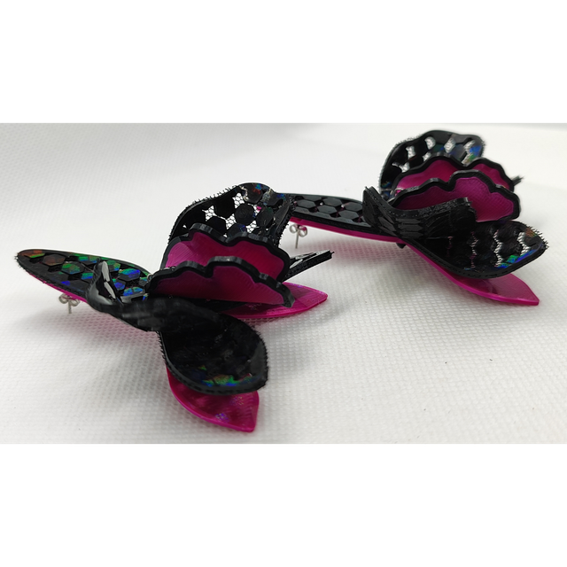 Pendientes 3D inspirados en la orquídea Cataleya, flor símbolo de belleza, feminidad y fortaleza. Con pétalos texturizados en negro, magenta y reflejos holográficos, están hechos en PLA ecológico, sin níquel y totalmente a mano en España. Ligeros y vibrantes, fusionan arte floral con sostenibilidad. Ideales para mujeres que florecen con autenticidad y estilo. 🌸 Eleva tu look con esencia tropical y alma consciente.