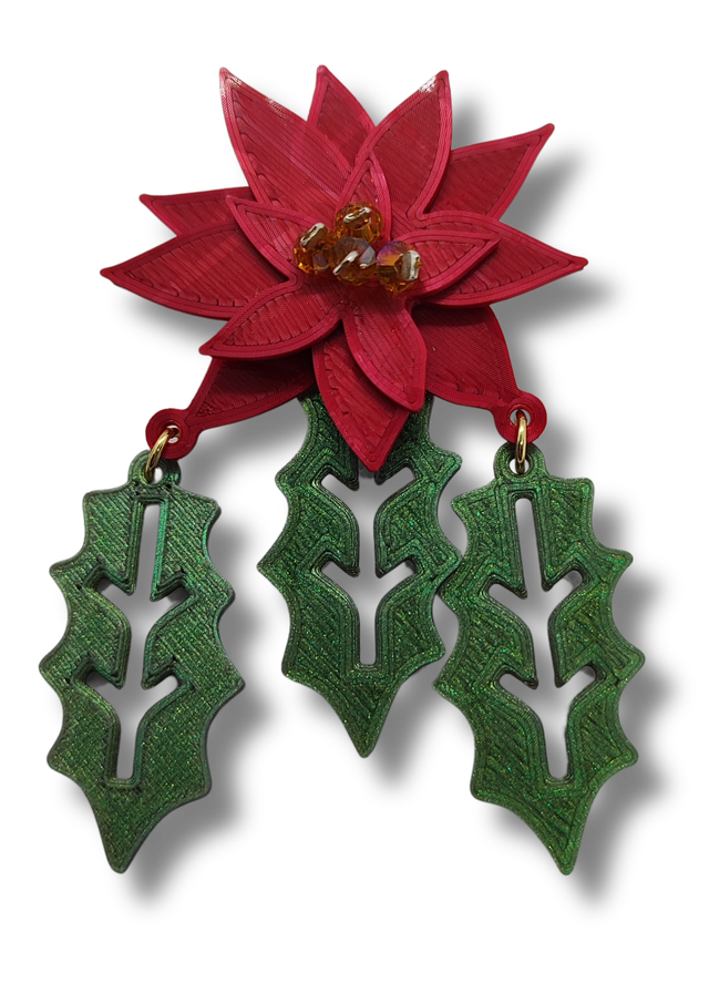 Celebra la magia de la temporada con los pendientes largos "Scarlet", inspirados en la icónica flor de pascua. Esta pieza única fusiona la tradición navideña con un diseño moderno y sostenible, destacando la belleza en cada detalle.
