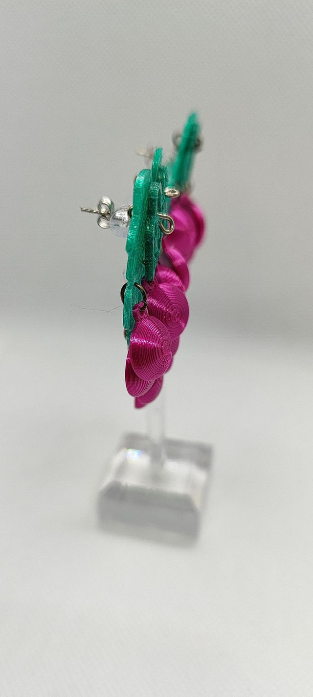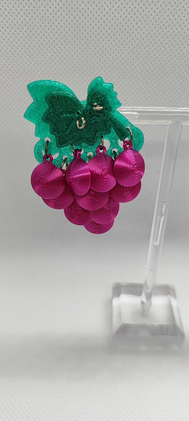 Eleva tu estilo con estos exclusivos pendientes en forma de racimo de uvas, diseñados artesanalmente y creados mediante tecnología de impresión 3D. Este diseño combina elegancia, creatividad y un compromiso con la sostenibilidad.