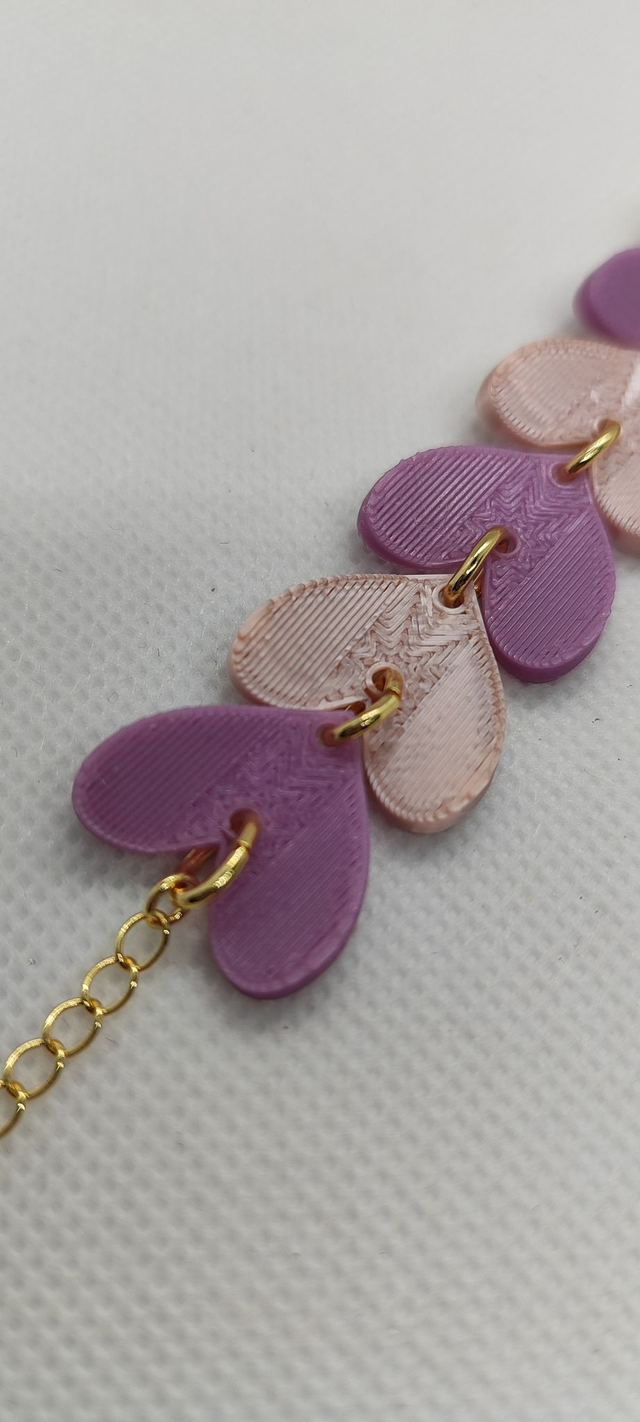 Sumérgete en la dulzura y el simbolismo del amor propio con esta pulsera de corazones en cascada , una joya que combina romanticismo, elegancia y sostenibilidad . Fabricada con PLA biodegradable mediante impresión 3D y detalles en acero inoxidable sin níquel , es ligera, hipoalergénica y perfecta para pieles sensibles .