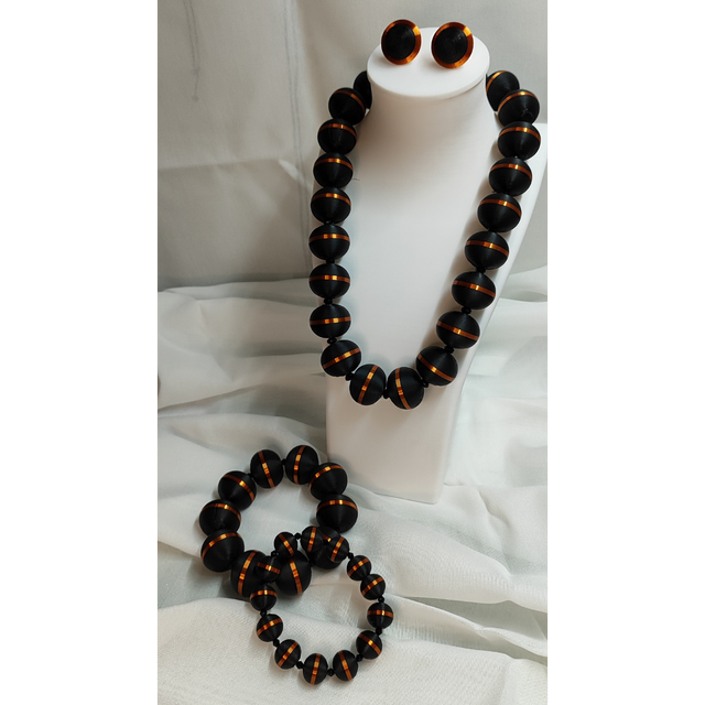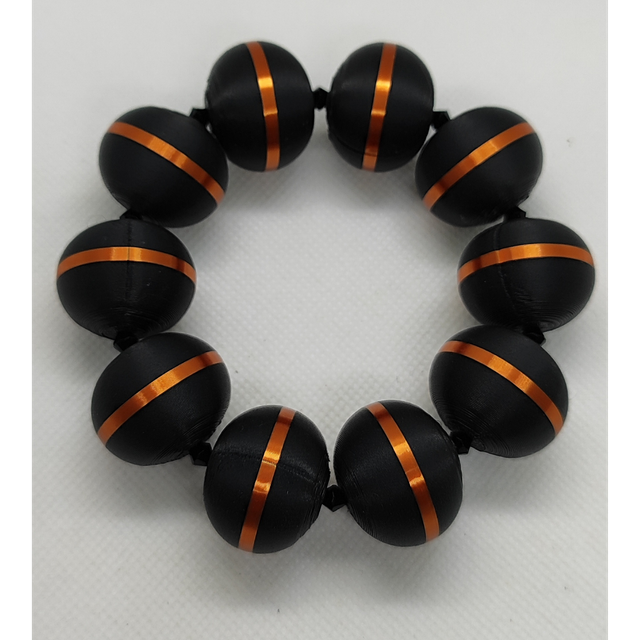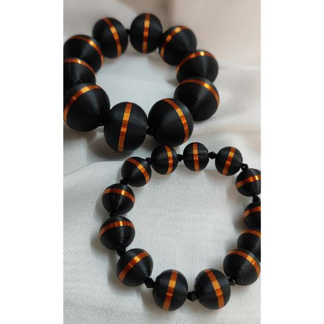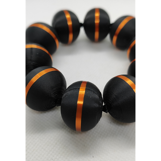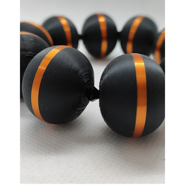 Pulsera maxi hecha en impresión 3D con esferas negras grandes y líneas cobre. Imponente, ligera y ecológica, ideal para destacar con fuerza. Fabricada en PLA biodegradable y libre de níquel. Complemento perfecto para looks con carácter. Hecha a mano en España, diseño exclusivo ImpYris.
